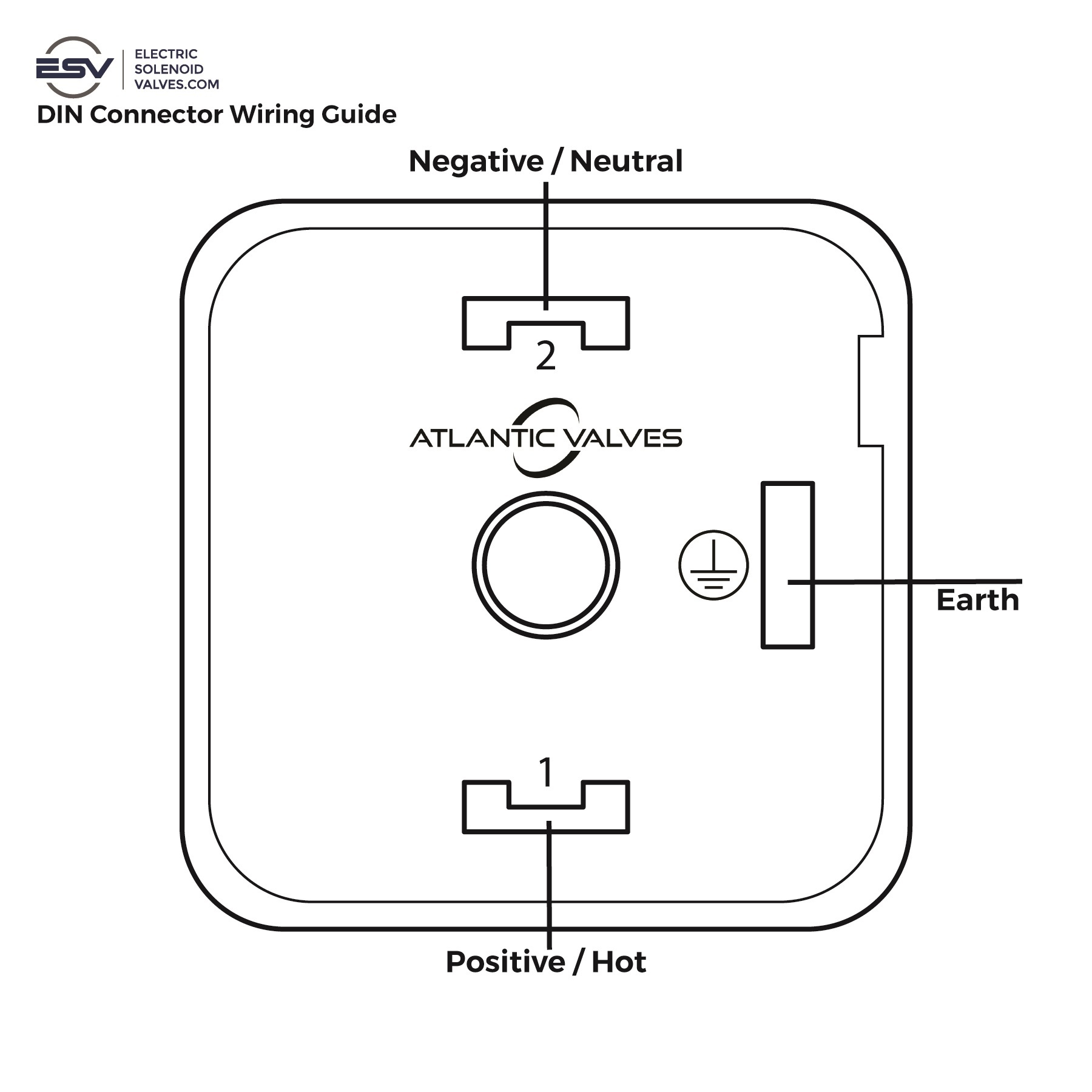Many ESV coils use a DIN 43650A (3‑prong) connector. The plug’s screw terminals make installation simple; power leads land inside the connector housing. Product pages commonly note the DIN type and enclosure rating (e.g., IP65 / NEMA 4).